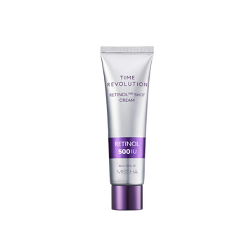Time Revolution Night Repair Retinol 500 Shot Cream is our new and improved overnight probiotic treatment. Introducing RETINOL SHOT™: Missha’s unique stabilizing formula of pure retinol + retinol-boosting ingredients to repair the skin barrier and fortify retinol’s anti-aging properties. This ultra-nourishing cream is also infused with the classic Night Repair formula Extreme Biome™, a combination of 10 potent probiotics for rapid results. The soft balm texture cream absorbs quickly to moisturize, improve elasticity and radiance, and brighten skin overnight. Use sunscreen to protect your skin during the day. Time Revolution Night Repair Retinol 500 Shot Cream is dermatologically tested for sensitive skin. Recommended for: All Skin Types Size: 60 ml / 2.02 fl.oz.