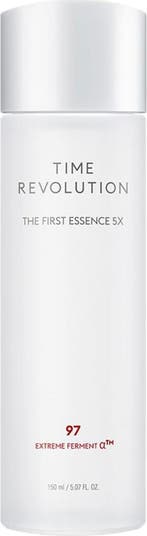 A K-beauty best-seller, the Time Revolution The First Essence 5X is our fifth-generation leading essence. Formulated with 97% Desert Cica Yeast Ferment, this firming, brightening essence helps maintain skin pH balance, and delivers dense moisture while offering basic strength care. Pure, potent skin-nourishing ingredients provide eight key skincare benefits: clarity, moisture, skin tone, texture, soothing, smoothness, hyperpigmentation, and protection. Ingredients are fermented with the EXTREME FERMENT α™ Method, a unique three-step fermentation technology that stably delivers an extreme boost of active ingredients to the skin. pH of 5.5. Formulated without artificial fragrances and colors, parabens, sulfates, animal products, alcohol, mineral oils, essential oils, or silicone. *Time Revolution The First Essence 5X is clinically proven to improve skin tone, texture, and moisture within 14 days of use. Recommended for: normal, sensitive, dull, dry or aging skin Size: 150 ml / 5.07 fl. oz.