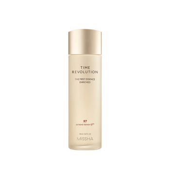 Time Revolution The First Essence, now Enriched. Formulated with 97% Extreme Cica Ferment, this brightening and youth-enhancing essence helps strengthen the skin's natural defenses and brightens overall skin complexion. It also smooths texture and improves signs of aging. New key ingredients Beta Glucan and Fermented Black Yeast Extract also boost hydration and youth enhancing benefits. Pure, potent skin-nourishing ingredients provide eight key skincare benefits: intensive brightening, wrinkle-repair, moisture, skin tone, texture, elasticity, smoothness, and skin protection. Time Revolution The First Essence Enriched is clinically proven to moisturize, hydrate and brighten skin, while improving signs of aging and overall complexion. Recommended for: dry, aging skin or normal/sensitive skin Size: 150 ml / 5.07 fl. oz.