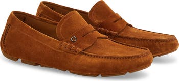 Discreet Gancio hardware brings understated branding to this calfskin-suede penny loafer set on a segmented driving sole.