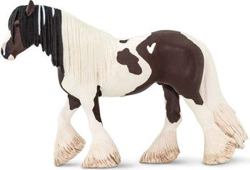 Tinkers, also known as d Irish Cobs, are a breed of horse developed by the Roma people to pull their caravans. This breed is usually recognized by its piebald pattern, long straight mane, and the unique "feathering" around its feet, giving its legs a shaggy appearance. Safari Ltd. Tinker Horse figurine perfectly captures these unique features. Individually hand-painted with lifelike detail, this figurine showcases the distinct piebald brown and white coat commonly found in Tinker Horses, complemented by a black and white mane and dark grey hooves tucked under feathered ankles. The nose is depicted with black and pale pink hues, adding to its realism. Constructed from non-toxic, BPA-free PVC, this Tinker Horse figurine guarantees both safety and durability, providing countless hours of educational play. At 6 inches long from snout to tail, and 4.25 inches tall to the point of its ears, it's an easy addition to any play environment. As part of the Winner's Circle Horses collection, this Tinker Horse figure is a wonderful gift for children interested in horses, equestrian enthusiasts, and collectors. It serves as an engaging, educational tool, fostering curiosity about different horse breeds and their distinct characteristics. Whether given as a gift or added to a collection, this hand-painted Tinker Horse figurine is sure to inspire imagination and promote learning.