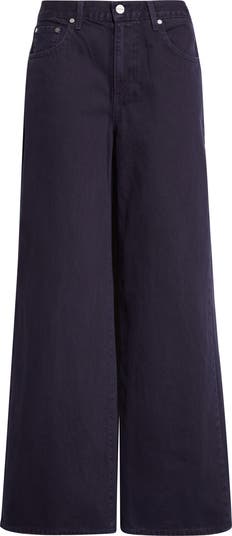 A saturated dark wash lends a polished look to these mid-rise jeans cut from structured cotton in a wide-leg silhouette.