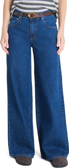 Drapey wide legs define the silhouette of these indigo-wash jeans made from nonstretch denim.