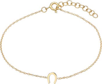 Symbol of good luck, a tiny horseshoe charm centers this 14-karat-gold bracelet perfect for wearing solo or stacked with other pieces.
