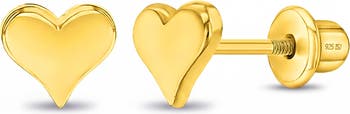 These sweet little girls’ polished heart earrings are beautifully crafted from 14k gold over sterling silver, offering a warm, radiant shine that’s gentle on sensitive skin. Perfect for young wearers, they feature a secure safety screw back closure designed for all day comfort and worry free wear. Delicate, hypoallergenic, and charmingly timeless, these heart earrings make a lovely everyday accessory or a thoughtful gift for any little girl.