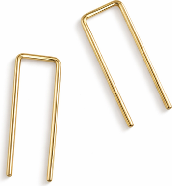 Some earrings earn their place by doing very little. The Tiny Staple Threader is hand-formed from 14k gold fill into a clean, minimal loop that threads through the ear and sits close — lightweight, secure, and just the right amount of detail. Half an inch of understated gold that works with everything in your wardrobe. The kind of earring you put in on a Monday and are still wearing on Friday. Hand-formed 14k gold fill. 1/2" staple threader. Silicone backs. Sold as a pair.