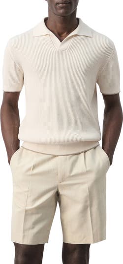 Smart contrast tipping and ribbed trim define a classic polo rendered in a soft cotton blend with an airy open-stitch design.