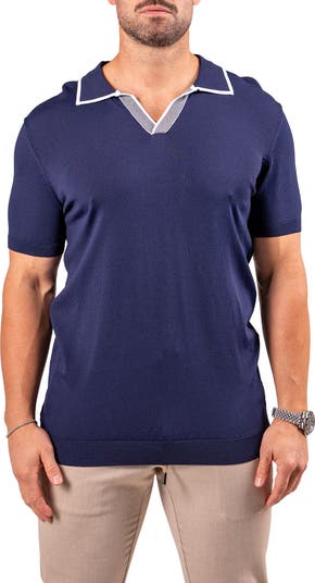 A sporty knit kissed with breathable cotton makes a comfortable favorite of this polo designed with a stretchy, physique-hugging fit. A contrast design at the Johnny collar adds a distinctive pop to the wear-anywhere look.