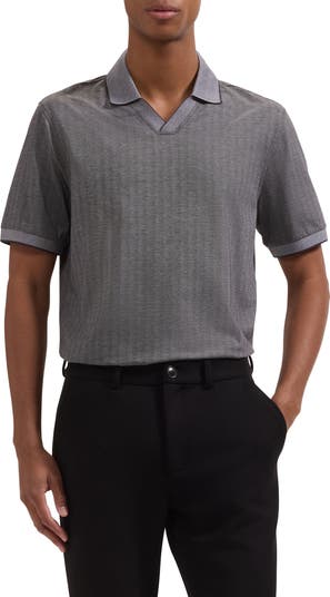 Crisp tipping accents the collar, placket and cuffs of this cotton polo made with exceptionally soft herringbone knit and styled with a johnny collar for a relaxed, sporty look.