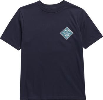 A colorful screenprint brands the chest and back panel of a comfy crewneck tee cut from ultrasoft combed cotton.
