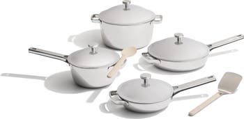 What it does: This multifunctional set sautés, fries, roasts, boils, bakes, braises, sears, strains, serves and stores, making it great for larger-family dinners, batch cooking and hosting. Each piece features extra-deep sides, a rivet-free design and a domed lid that locks in steam and provides ample space for roasting.