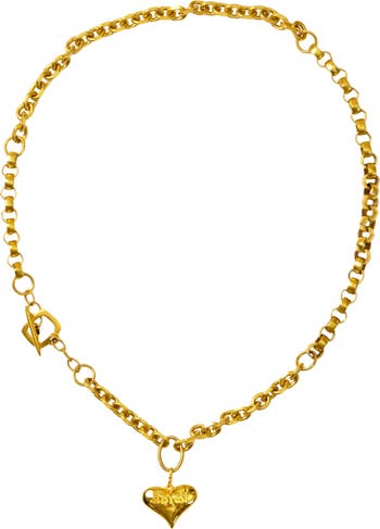 Elevate your style with the Tito necklace, featuring a 22-inch antique gold mixed chain and a puffy Spicy heart pendant with a toggle clasp. Perfect for adding a touch of elegance to any outfit.