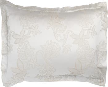 Jacquard weaving brings subtle texture and the look of intricately textured lace to the floral pattern of this cotton sateen pillow sham that casts an air of luxurious sophistication over your bedroom retreat.