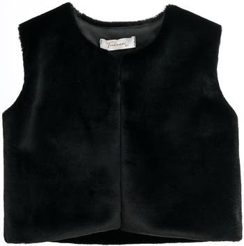 A cozy, sleeveless vest in soft faux‑fur that offers a sleek, minimalist shape with a rounded neckline and clean front for layering warmth without bulk. The simple silhouette makes it versatile for both casual and dressier children's outfits.