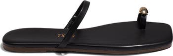 Sculptural golden hardware highlights the toe loop of this effortlessly glam and unmistakably modern handcrafted sandal. The wide, square toe box helps prevent cramping, while the foam-cushioned footbed and flexible rubber sole provide everyday comfort.