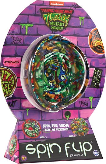 SPIN FLIP PUZZLE: 12 RINGS - TMNT TURTLE POWER - Join the heroes in a half shell with the Spin Flip Teenage Mutant Ninja Turtles Puzzle 1! Spin it, flip it, solve it. This innovative puzzle invites you to spin, flip, and solve as you immerse yourself in a dazzling 360-degree experience filled with fun. Designed for puzzle lovers, this engaging challenge is perfect for those who appreciate brain teasers infused with a touch of glamour. This Spin Flip Puzzle features 12 concentric rings that you can twist, slide, and manipulate to reveal stunning images of TMNT. As you play, you'll discover a beautiful collage of scenes, encouraging you to think critically and creatively as you work to solve the puzzle. What makes this puzzle even more exciting is its double-sided design, offering not one but two complementary images for double the fun! Each side presents a unique image, ensuring that you’ll never run out of stylish challenges to tackle. Designed with little hands in mind, the compact size of the puzzle (4.25” W x 4.25” H x 0.25” D) makes it easy for kids to manipulate and enjoy. This portability also makes it a great travel companion, perfect for on-the-go fun or quick entertainment at home. When you’re finished, the puzzle can be easily stored flat, taking up minimal space while remaining ready for your next fashion adventure. With its official Teenage Mutant Ninja Turtles license, this authentic puzzle is a fantastic gift for fans of all ages. Whether for a birthday, holiday, or just because, the Spin Flip Puzzle promises hours of entertainment and excitement. Suitable for children ages 8 and up, this puzzle is not just a toy—it's a stylish experience that encourages imaginative play and critical thinking.