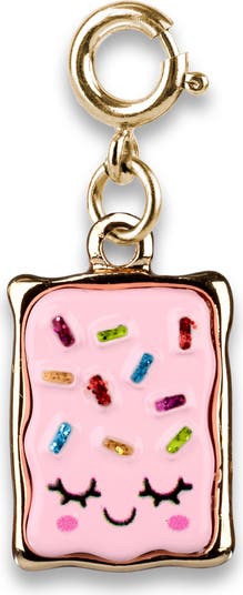 A sweet toaster cake charm makes a sparkling and colorful addition to your little one's chain-link bracelet.