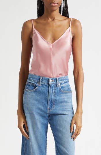 Cut from a luxe silk blend, this glossy cami is cut in a flared figure-skimming silhouette.