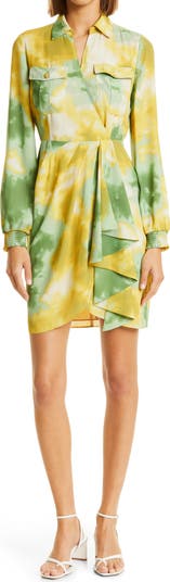 Tie Dye Wrap Front Long Sleeve Shirtdress