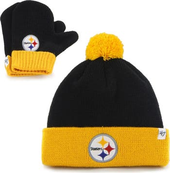 Toddler '47 Black/Gold Pittsburgh Steelers Bam Bam Cuffed Knit Hat with Pom and Mittens Set
