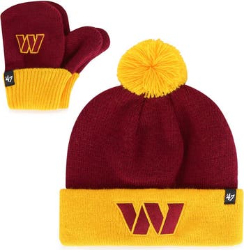 Toddler '47 Burgundy/Gold Washington Commanders Bam Bam Cuffed Knit Hat with Pom & Mittens Set