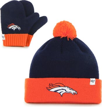 Toddler '47 Navy/Orange Denver Broncos Bam Bam Cuffed Knit Hat with Pom and Mittens Set