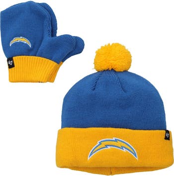 Toddler '47 Powder Blue/Gold Los Angeles Chargers Bam Bam Cuffed Knit Hat with Pom & Mittens Set