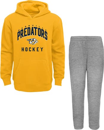 Keep your young Nashville Predators fan nice and warm on game day with this cozy Play by Play set. It includes a plush hoodie and pants with unmistakable team graphics that create a spirited look. While giving your kiddo a stylish look, this Nashville Predators set's midweight design and fleece lining offer extra warmth for a snug fit and feel.