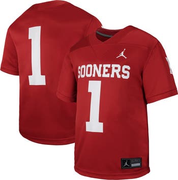 Elevate your young fan's wardrobe with this #1 Oklahoma Sooners Untouchable Replica Game Jersey from Jordan Brand. This jersey is designed for movement, ensuring your young fan stays comfortable whether they're playing a pickup game or cheering from the stands. The screen print numbers and team details offer lightweight durability.