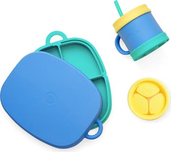 Simplify mealtime with this plastic-free set that includes two divided plates that convert into an on-the-go bento box, plus a versatile sippy cup that can transform into a straw cup or snack container. Made from premium, BPA-free silicone, this durable set is safe for use in the microwave, dishwasher, freezer, and oven.