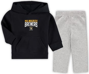 Jumpstart your kiddo's Milwaukee Brewers fandom with some team gear of their own. This Fan Flare Fleece hoodie and pants set is lined with soft fleece so your youngster stays warm and comfortable while supporting the squad. Both pieces are decked out in Milwaukee Brewers graphics for a coordinated, complete outfit your young fan will love.