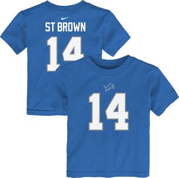 Dress your little one in Detroit Lions pride with this Amon-Ra St. Brown Player Name & Number T-Shirt from Nike. Made from 100% cotton, this tee provides a soft and breathable feel that will keep your little one comfortable all day long. The screen-printed Detroit Lions logo and Amon-Ra St. Brown's name and number on the front and back make it clear who your toddler is cheering for.