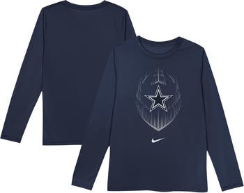 Dress your little one in Dallas Cowboys style with this Nike Legend Icon Long Sleeve T-Shirt. Made from recycled polyester, this long-sleeve tee is both comfortable and environmentally conscious. The stylized football graphic with the Dallas Cowboys logo printed inside adds a touch of team pride to any game day outfit.