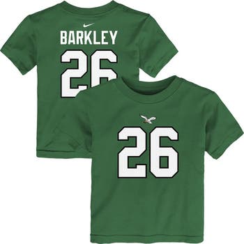 Dress your little one in Philadelphia Eagles pride with this Saquon Barkley Player Name & Number T-Shirt from Nike. Made from 100% cotton, this tee provides a soft and breathable feel that will keep your little one comfortable all day long. The screen-printed Philadelphia Eagles logo and Saquon Barkley's name and number on the front and back make it clear who your toddler is cheering for.