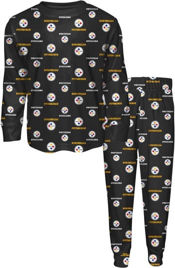 Toddler Outerstuff Black Pittsburgh Steelers All-Over-Print Long Sleeve T-Shirt and Pants Sleep Set