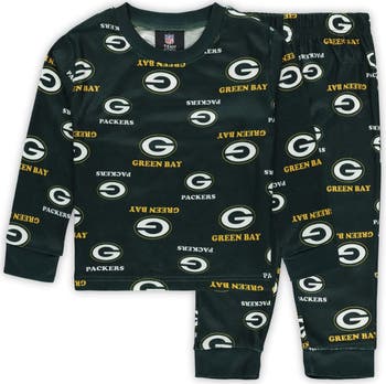 Wrap your little one in team spirit with this Green Bay Packers All-Over-Print Long Sleeve T-Shirt and Pants Sleep Set from Outerstuff. Featuring an all-over team logo print, this two-piece set includes a crew neck long sleeve tee and pants to help you celebrate your team in style. The elastic waistband ensures a snug and comfy fit for a night of sweet dreams.