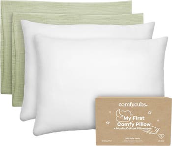 Comfy Cubs Toddler Pillows with Soft Muslin Pillow Case, Pack of 2, Alternate, color, Sage