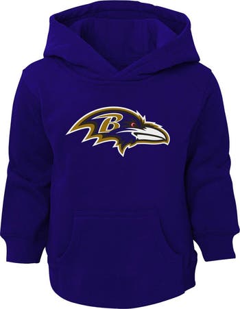 Indulge your young fan's budding team spirit with this Baltimore Ravens pullover hoodie. A comforting midweight design paired with fleece lining provides a warm and snug feel. The prominent Baltimore Ravens logo on the chest puts their fandom front and center.