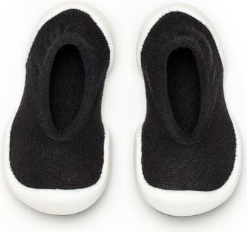 - STAY ON: The cotton top wraps the little feet just like comfy socks - easy to put on and take off. Superior elasticity helps keep them on. NATURAL: Non-toxic, BPA Free, ultra-light (32g - size 5), recyclable, 100% TPE (Thermoplastic Elastomer) rubber material (often used in baby teething toys) keeps it both soft and supportive - making it easier to walk and run. BREATHABLE: Tiny holes on the bottom rubber sole, combined with cotton sock top make Komuello wonderfully breathable so no worries for sweaty feet! SLIP RESISTANT: Beehive patterned TPE natural rubber sole is perfect for indoor and outdoor. EXTRA COMFORT: Komuello's patented unique Air Pocket between the sock layer and sole provides extra cushion. WATER SHOES: Perfect as water shoes at the beach, pool or splash pad as Komuello shoes are designed with tiny holes in the rubber soles to allow water to pass through easily and they dry quickly. MACHINE WASHABLE: Got dirty? No problem. Throw them in the washing machine! FLEXIBLE & SUPPORTIVE: Our rubber soles are flexible for easy movement, yet give the right amount of support for arch development. Comfortable to wear all day. WEAR EVERYWHERE: Komuello shoes are perfect for both indoor (home, preschool) and outdoor (park, playground).