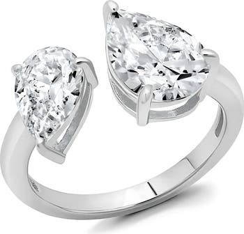 Two pear-cut cubic zirconia light up the points of this open ring and brings exquisite shine to any ring stack.