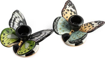 Striped bases and gilt details highlight these charming candle holders that bring a colorful touch of the season to your welcoming table.