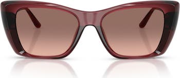 Signature logo medallions glint at the temples of Italian-made sunglasses featuring beveled square frames and gradient lenses.