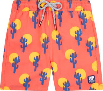 Your lil surfer will seek out the gnarliest waves in patterned swim trunks made from a quick-drying fabric and finished with a drawstring waist.