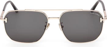Slim metal frames fitted with smoky lenses define these Italian-made navigator sunglasses featuring adjustable nose pads and T-bar logos at the hinges.