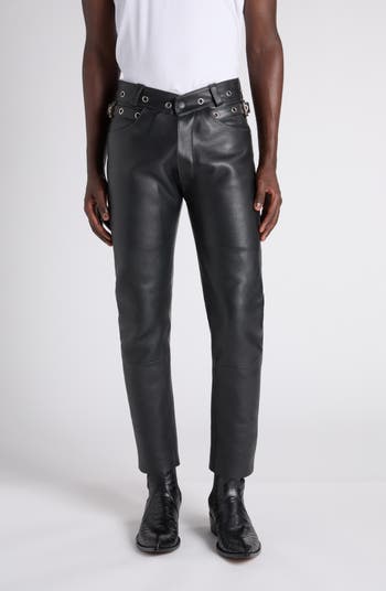 Cut close through the hip with a tapered leg, these calfskin-leather pants capture Haider Ackermann’s continuation of Tom Ford’s rule-breaking glamour in motion. Cool silvertone hardware pops against the textured leather and the waistband tilts just so to contour the waist.
