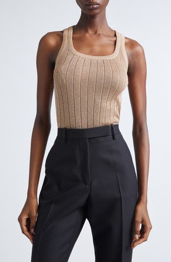 Shimmering metallic fibers bring glam appeal to this wardrobe-staple tank made in Italy from figure-hugging rib.