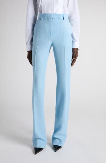 Featured on the fall ’25 runway, these pants turn precision tailoring into a quiet light show as wool-forward crepe carries sporadic sequins that spark in motion. Expertly cut in Italy, the straight-leg line reads long and clean with a smooth front and a measured drape that keeps the shimmer in focus.