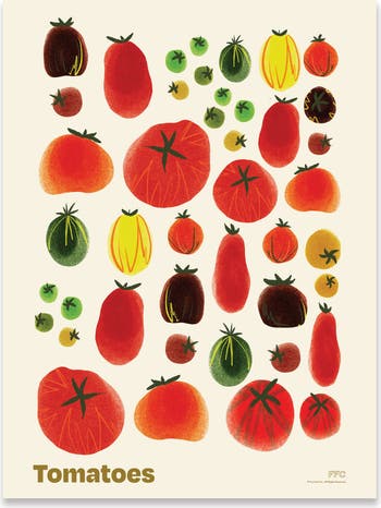 The Tomato Family Reunion Print is an illustrated celebration of the bold, bizarre, and beautiful members of the tomato clan. Hand-drawn in full color and fully committed to stealing the spotlight on your wall. From wobbly heirlooms to picture-perfect romas, this design showcases the full spectrum of tomato glory, reminding us that no two fruits are the same (and yes, they’re fruits... deal with it). Packed with personality and a hint of sass, it’s a vibrant homage to the garden’s most beloved overachiever. Ideal for kitchens, dining spaces, or anywhere that could use a splash of summer and a bit of botanical charm.