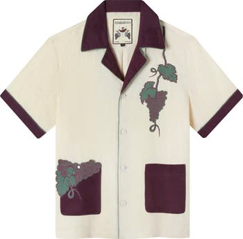 - Neatly appliquéd grape vines on chest and edge-embroidered functional pocket.