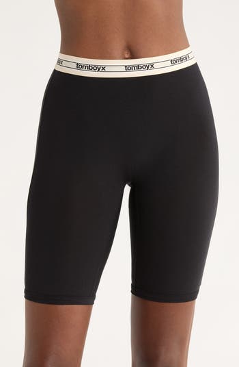 An understated logo brands the stay-put waistband of long boxer briefs cut from feather-light and silky moisture-wicking jersey.